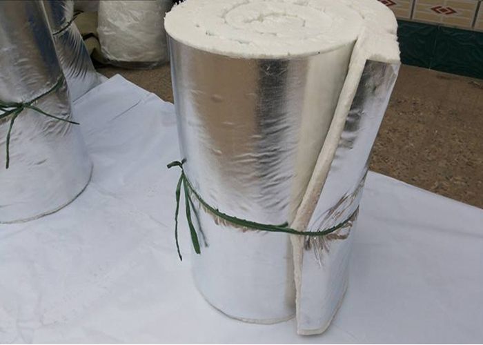 云緯覆鋁箔針刺毯是在現(xiàn)有陶瓷纖維計刺毯的基礎上利用專用機械,通過專用粘結(jié)劑將金屬鋁箔平整地覆到針刺毯表面形成的一種復合產(chǎn)品。由于在針刺毯表面增加了一層致密 的金屬鋁箔層,有效屏蔽了熱量透過纖維毯向空氣的對流,對輻射熱量形成有效反射,從而極大地提高了產(chǎn)品的絕熱性能。