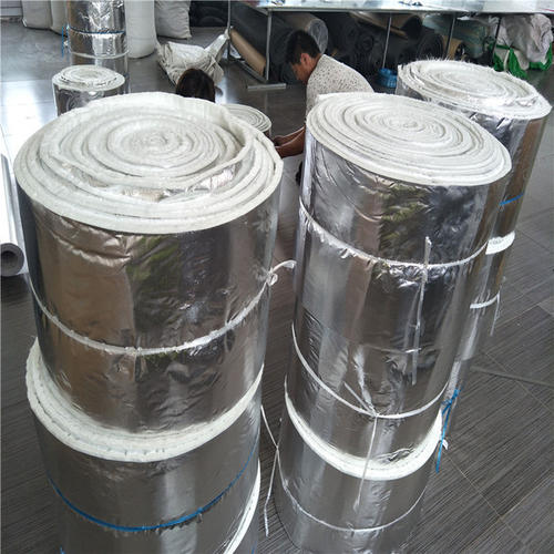 云緯覆鋁箔針刺毯是在現(xiàn)有陶瓷纖維計(jì)刺毯的基礎(chǔ)上利用專(zhuān)用機(jī)械,通過(guò)專(zhuān)用粘結(jié)劑將金屬鋁箔平整地覆到針刺毯表面形成的一種復(fù)合產(chǎn)品。由于在針刺毯表面增加了一層致密 的金屬鋁箔層,有效屏蔽了熱量透過(guò)纖維毯向空氣的對(duì)流,對(duì)輻射熱量形成有效反射,從而極大地提高了產(chǎn)品的絕熱性能。